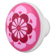 Japanese mandala design ceramic knob that depicts a stylised lotus flower, symbolising purity, spiritual awakening and faithfulness - flower in soft pink, burgundy and hot pink on a fuchsia pink background