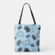Modern lotus flowers pattern in grey colour with silver glitter effect tote bag .Unique, original floral design on blue background.This design comes in different colour combinations and is available on many products in the store.