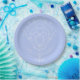 White lotus flower floral botanical line drawing on a purple lilac background. A calming tableware design for your next meditation party or yoga get together.
