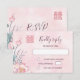 Watercolor painted lotus on a pink watercolor background and a pink double happiness symbol. RSVP Chinese Wedding Card.