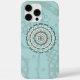 This mandala design features layers of white, turquoise and brown patterns inspired by Celtic weaves and Indian mehndi, such as vines, ribbons, and lotus flowers.