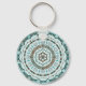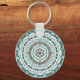 This concentric circle mandala features layers of white, turquoise and brown patterns inspired by Celtic weaves and Indian henna, such as vines, ribbons, and lotus flowers.