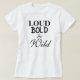 Loud Bold and Wild. Have fun wearing these statement shirts with black text in various fonts on a white shirt. Available in shirt styles for any age male and female. Original Text Saying Design © 2018 TamiraZDesigns. Visit my store for more Original items: www.zazzle.com/tamirazdesigns*