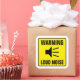 Loud noise hazard warning sign icon square sticker. Black and yellow sticker to warn people about high sound levels. Wear ear protection to prevent hearing damage and tinnitus. Custom signage for factory, workplace, office room, music festival, concert, fireworks show, restaurant, stadium, cinema, wedding, store, shop, DJ party, show, bar, cafe, disco, sports event, club, busy street and other places. Wear over the head earmuffs or earplugs to reduce the decibels. Tip: have earplugs ready on your keychain. Be careful with high volume sounds.