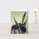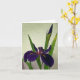 Featuring a photo of a blooming Louisiana Iris in shades of yellow, blue, and purple sometimes so deep, this variety is known as "Black Gamecock".