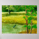 This design is from an oil painting I painted as I looked out over the pasture and the pond. The bird seems so peaceful as he dips his head quickly under water. Actually, he is devouring and terrorising the fish.