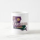 A classic coffee mug that features retro style Louisiana state silhouette in Mardi Gras colours