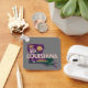 Stylish souvenir keychain features retro style Louisiana state silhouette on medium grey background