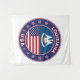 Badge of Louisiana with flag of Louisiana and flag of USA colours, rounded shape.