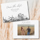 Modern Louisville black and white save the date invitation. The front showcases a stunning sketch, setting the perfect tone for your wedding day. Add your own photo to the back and customise the text to make it your own. Enter the Zazzle design tool for additional design customisations.