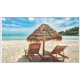 Lounge chairs on beach throw pillow tablecloth