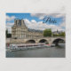 Louvre Museum in Paris, France on a beautiful sunny day with a water taxi sailing down the Seine River