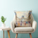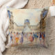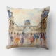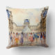 This throw pillow is decorated with a watercolor painting of the Louvre Museum in Paris France.