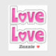Two stickers of the word "Love" with heart shape