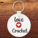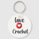 key chain for a person who loves to crochet help keep track of your keys with this key chain, large black letters and a large red heart "love 2 crochet" personalise the back.