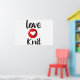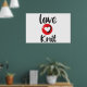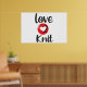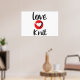 Love 2 Knit poster. Great gift idea for a person who loves to knit. wall decor for your office of craft room. Housewarming gift for a maker. black and red letters: I love 2 Knit.