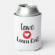 Can Cooler for a person who loves to loom knit, large black letters and a large red heart "love 2 loom knit" customise the back.