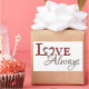 This sticker design features the text "Love Always" with the "o" in Love as a Red Tulip Heart Wreath. -