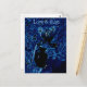 Wild animal postcard featuring a cute Koala bear hugging a tree with a blue digital effect and the words 'love and hugs' From my original mixed media acrylic and glass painting. ©Annabel Potter