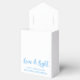 Cute custom Love and Light Hanukkah party favour box for Jewish family gifts at a Chanukah party or a synagogue. Personalise with your own last name or group information in blue around the pretty gold menorah.