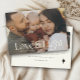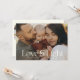 Elegant family photo holiday card with your photo in a with modern typography design reading Love and Light. Space for personal messages on front and back next to a sparkly star as well as 3 more photos on the back.