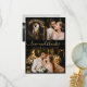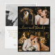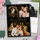 Elegant, Modern Black and Gold Hand Lettered Wedding 3 Photo Collage Thank You Card. Stylish wedding thank you card template featuring (3) three photo on the front and (1) one photo on the back. With the text "Love and thanks" in a cursive swirly hand lettered typography script swash-tail font in gold color on black color background. Personalize your custom name and thank you message. If you prefer to handwrite your note, just delete the sample text to make more space. If You need help or matching item, please contact to me!