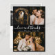 Elegant, Modern Black and White Hand Lettered Wedding 3 Photo Collage Thank You Card. Stylish wedding thank you card template featuring (3) three photo on the front and (1) one photo on the back. With the text "Love and thanks" script in a cursive swirly hand lettered typography swash-tail font in white colour on black colour background. Personalise your custom name and thank you message. If you prefer to handwrite your note, just delete the sample text to make more space. If You need help or matching item, please contact to me!