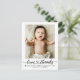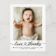 Share your joy with this Love and Thanks with heart script, Baby Photo Birth Announcement, featuring one cherished photo, your baby’s name, and a customizable heartfelt message—perfect for announcing your little one’s arrival and expressing gratitude.