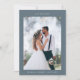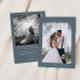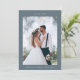 Simple and minimalistic wedding thank you card featuring your wedding photo with a white frame with texts around that says "Love and Thanks" and the couple's names and the wedding date. Message on the back of the card is editable and another picture can be added as well. This 2-sided thank you card is so timelessly stylish. The background is slate blue.