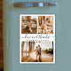 Elegant, Modern Handwritten Script 3 Photo Wedding Thank You magnetic card. Stylish wedding thank you card template featuring (3) three photo. With the text "Love and thanks" in a swirly hand lettered calligrapgy script swash-tail font in black colour on white background. Heart shape between the bride and groom's name. Easy to personalise the custom name and date. If You need help or matching item, please contact to designer!
