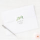 Rustic greenery bridal shower favour stickers featuring a simple design with a green watercolor painted sprig with large leaves, over a white background. Below is the message, "Love and Thanks" in a script font and your name, event title and date in a serif font. These elegant botanical stickers are perfect for a summer bridal shower and add a personal touch to your favours.