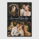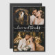 Elegant, Minimalist Black and White Hand Lettered Wedding Photo Thank You magnets. Stylish wedding thank you card template featuring three photo. With the text "Love and thanks" in a swirly hand lettered typography script font in white colour on black background. Heart shape between the names. Easy to personalise the custom name and date. If You need help or matching item, please contact to designer!