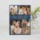 Love and Thanks Script Navy Photo Collage Wedding Thank You Card