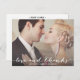 This chic design features a beautiful script font that says "love and thanks" that overlays your photo allowing your wedding photograph to be the focal point of the design.