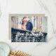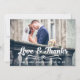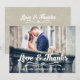 LOVE AND THANKS TYPOGRAPHY WEDDING PHOTO THANK YOU CARD. Design by Elke Clarke© for MonogramGallery printed by Zazzle. Send out your wedding thank you message as newly weds to your friends and family using this retro, thank you wedding photo card with the words "Love & Thanks" written in a white bold handwriting typography script text overlay. Replace the sample photo with your own. Add your personal thank you message on the back or leave blank and hand write your message in person. Other colours available. Burlap linen background is a printed photo effect.