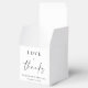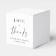 A chic wedding favour box featuring "Love + Thanks" in a modern script and elegant typography, your names and wedding date.
