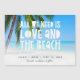 Featuring a captivating beach scene complete with white sands, azure waves, and a palm tree, this magnet sets the perfect tone for your destination wedding. The words "All we need is love and the beach" are scripted across the horizon, embodying the endless romance of your special day. This magnet is not only a charming keepsake but also a practical way to ensure your guests remember your wedding date. Stick it to their fridge or any magnetic surface as a gentle reminder of the love-filled festivities to come. Our Love and the Beach Destination Save the Date magnetic card is sure to make waves of excitement among your loved ones as they anticipate joining you for your unforgettable beachside celebration.