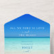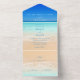 "All we need is love...and the beach" wedding invitation and rsvp all in one design is perfect for the couple who is having a coastal, island or oceanside wedding. Handwrite your guest addresses on the back of the folded invitation, or purchase the coordinating address label stickers (sold separately).