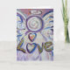 The word "Love" is painted in a soft white and pink pastels with purple in the background. The angel is framed with blue and purple accents. The word "Love" is in gold. The acrylic painting has a textural contrast and sparkle from a light layer of glitter. This angel greeting card or note card is wonderful for Valentine's Day, Christmas, or holidays & special occasions. You can personalise this card with your own custom text!