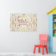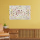Wall art with a whimsical take on our Love Anyway theme in shades of pink and red with bold embellishments, stripes and flowers. TEXT: "Love Anyway"