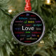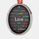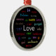Love Around the World In Black Premium Metal Ornament is a unique and lovely gift for friends, family or that very special someone! With elegant typography displayed against a classic black background this modern decoration will complement any home decor, while expressing the message of love in different languages from all over the world! Enjoy the beauty of this decoration as it is, or easily personalise by changing text, fonts and background colours.