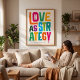 A bold typographic statement about connection and intention. “Love as Strategy” isn’t decoration — it’s a mindset. Strong, hand-shaped letterforms bring energy, contrast, and individuality into the composition, creating a vibrant and expressive visual presence. The bold color palette turns the message into a striking focal point while maintaining a structured layout. Designed in a 3:4 format for balanced proportions. Available sizes: 12×16, 15×20, 18×24, 24×32, 30×40 inches. Works as a focal point or within a gallery wall — ideal for living rooms, offices, or creative spaces. Colors may vary slightly due to screen settings. Frame not included.
