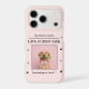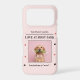 Designed with soft blush tones, playful hearts, paw prints, and your dog’s photo front and center, this case turns your phone into a heartwarming keepsake. The adorable phrase “You had me at woof!” adds the perfect touch of humor and love that dog parents adore.
