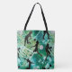 Large all-over-print brushed polyester tote bag with an image, on both sides, of silhouettes of volleyball players, volleyball nets and volleyballs on an artistic blue, green and yellow background. See the entire Father’s Day Tote Bag collection in the PARTY FAVORS section.