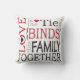 Black and Red Pillow displays "Love is the Tie that Binds this Family Together" words on the front. Back displays the family name that you choose. Great accent for the family room.