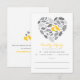 A sweet and simple RSVP design! Response card is adorned in a design of leaves in shades of light grey and charcoal grey. Two little love birds are shown in a pop of sunshine yellow. Back includes room for additional text, or a wedding website address. Coordinates with 'Love Bird Leaf and Heart Wedding Invitation'.