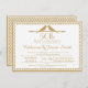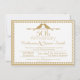 This 50th wedding anniversary invitation features two bird silhouettes, a decorative divider and a gold/brown and white pattern border. It's ready to be personalized and is suitable for a semi formal 50th wedding anniversary.