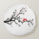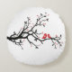 Love Birds on Branch – Romantic Red Heart Tree Art Round Cushion