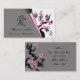 Love Birds On Sakura Tree And Chinese Love Symbol Business Cards. Leave a very favourable first impression with these lovely business cards. A business card with an Asian flair featuring two love birds on a blooming sakura tree with pink flowers under a grey, curled page and the Chinese love symbol on the right and another sakura tree on the left. Personalise it with your text.