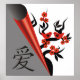 Love Birds On Sakura Tree And Chinese Love Symbol Poster